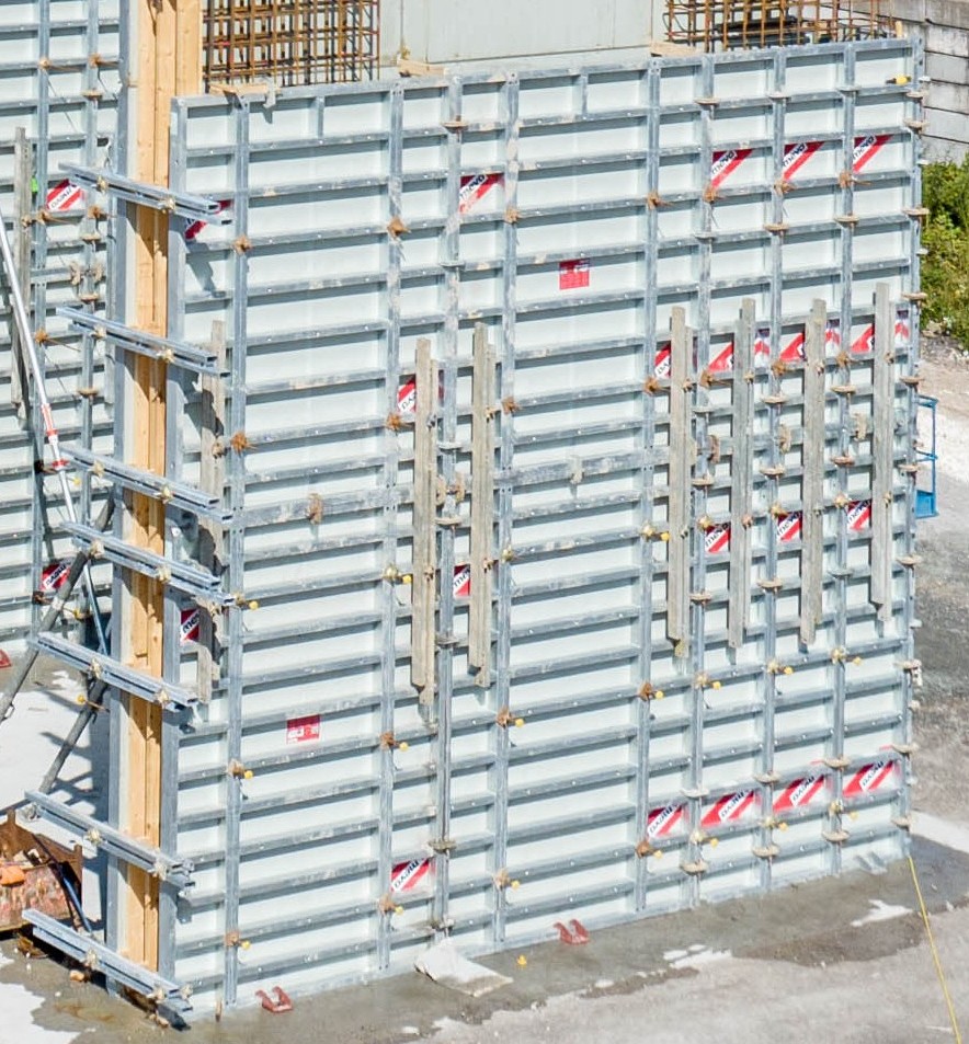 This easy to set up panel system has the ability to accommodate concrete pressures of up to 100kN/m2 over the entire surface, ensuring rapid progress of work on site. With a wide range of panel heights, Mammut panels can be set in an upright or horizontal position to ensure easy adaptation for any site requirements. Mammut is an especially good system for projects with varying pour heights, a crane dependent system that can be gang formed to create large surface area panel lifts.