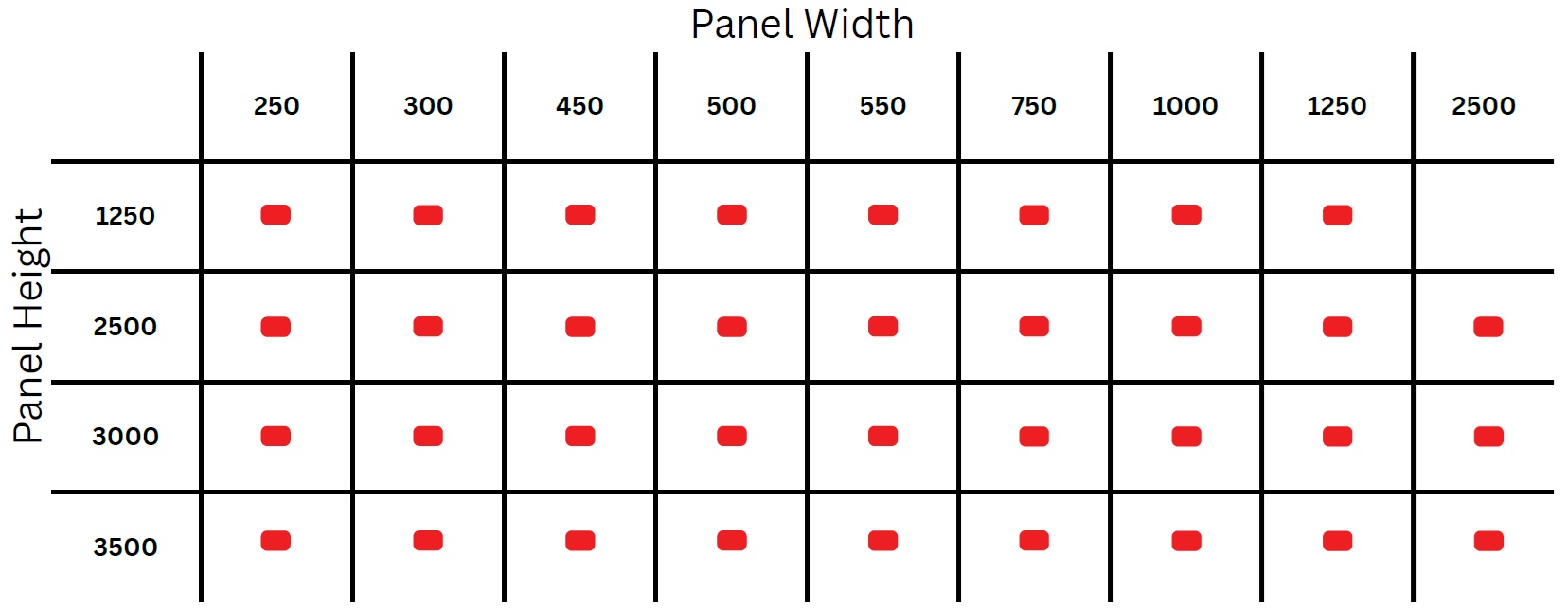 Bump notches for panel widths of 1250mm and more to simplify adjustment and alignment